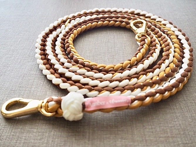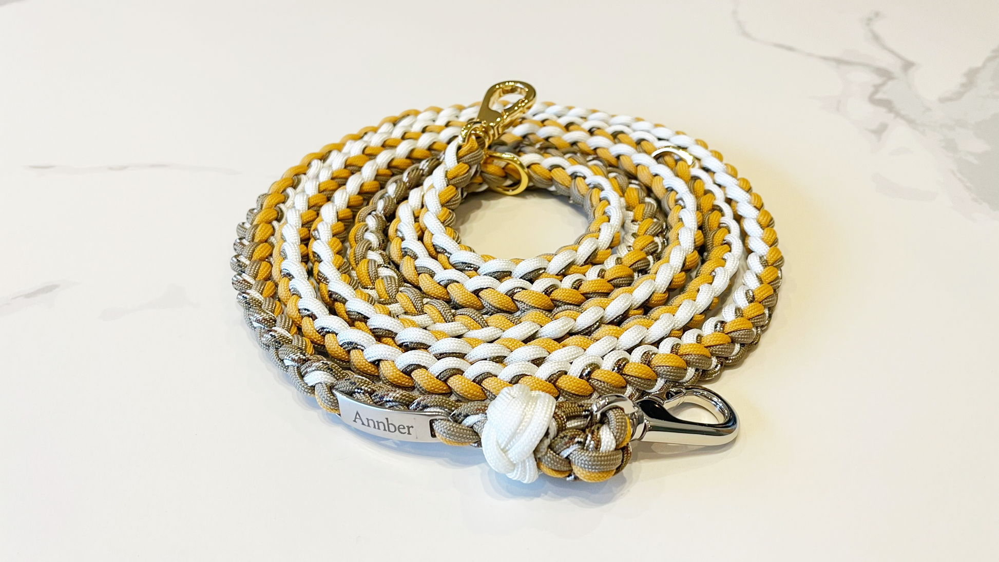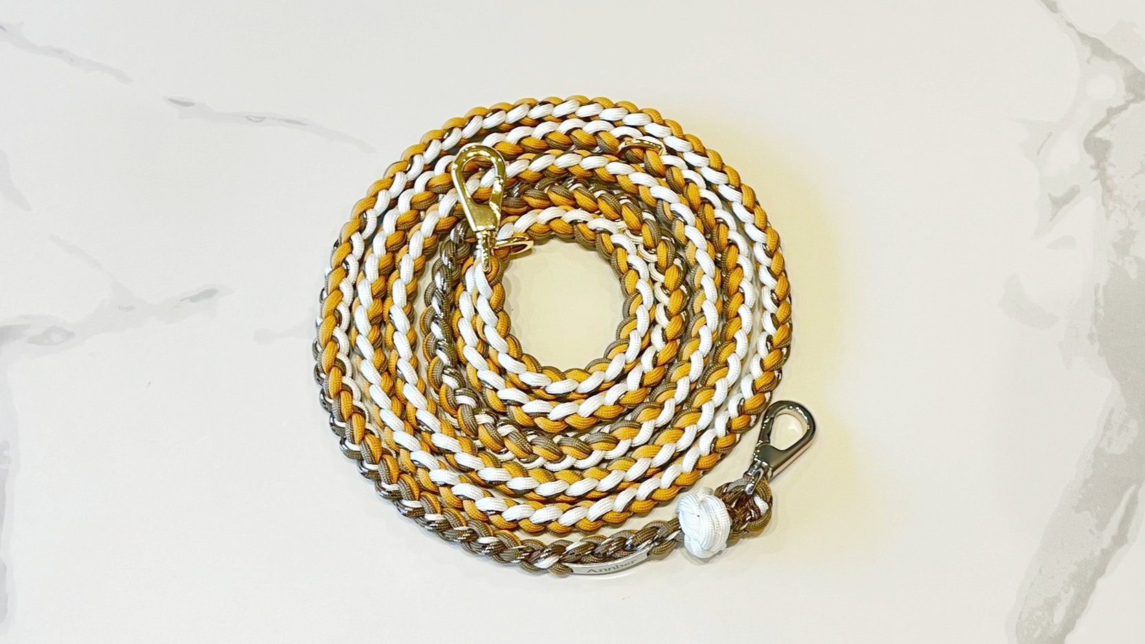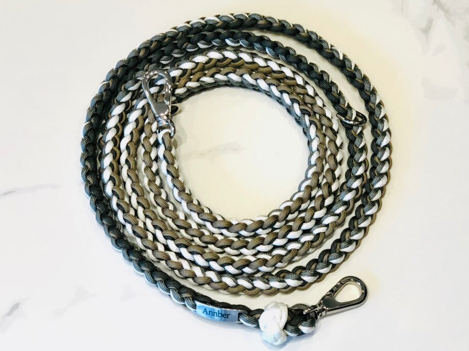 ブルドッグやラブラドールなどの20𝗄𝗀前後のワンちゃん向けの街中歩きや公園、2つ折りで首輪やハーネスに付ければ、カフェ店内でもお使いいただける5wayリードです。