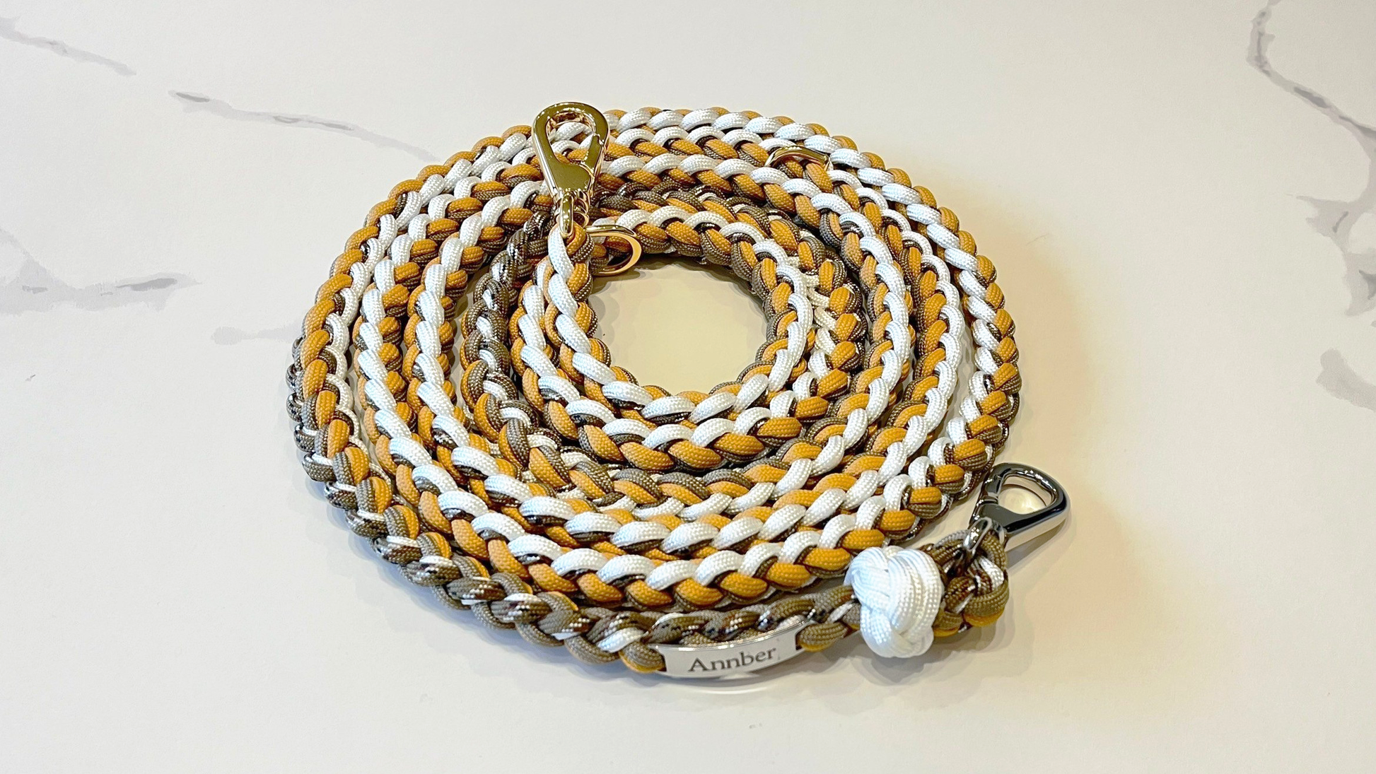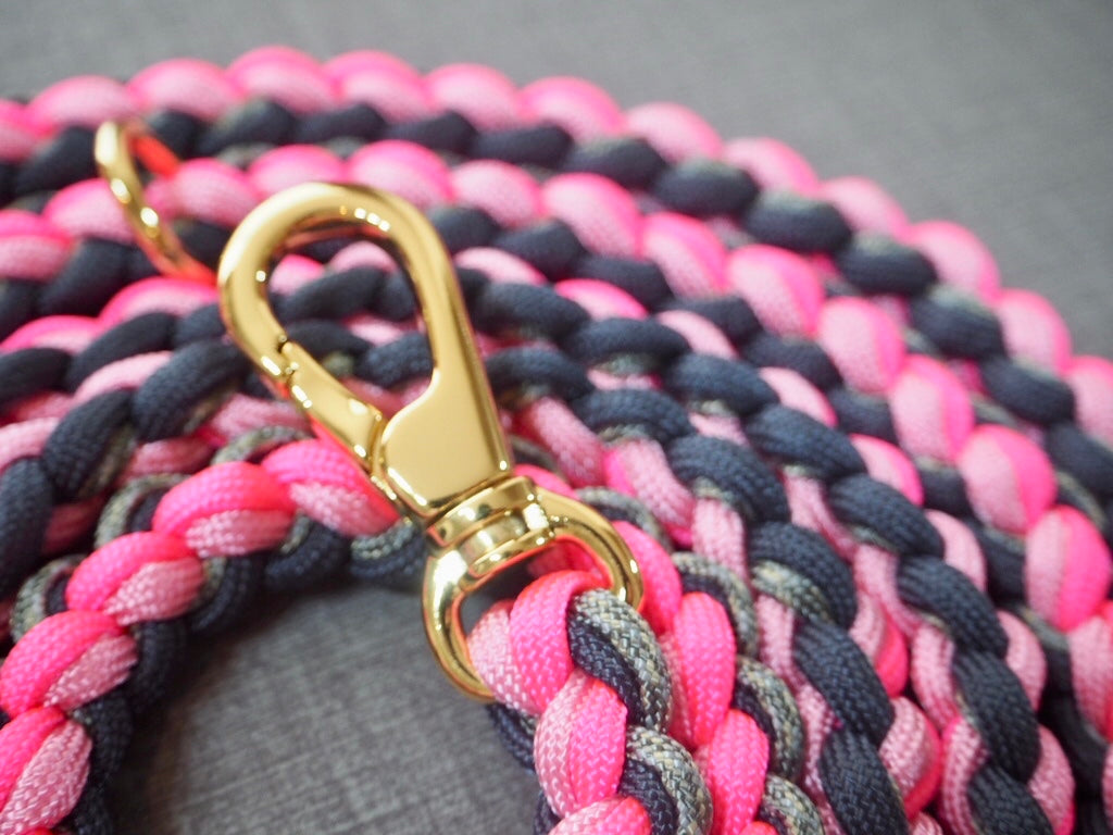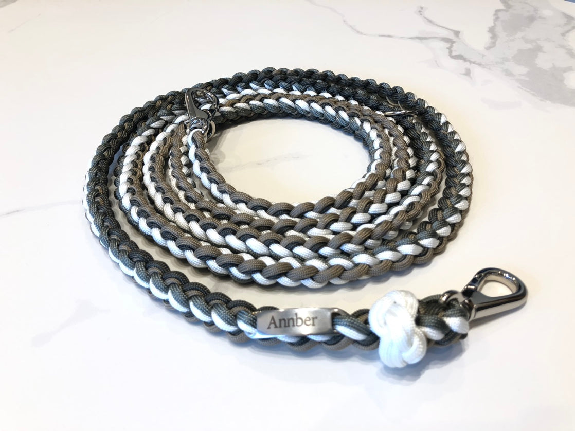 ꙳パラコードは一本あたり耐荷重250kgですが、15kg前後のわんちゃんは、強度を考え、オートクチュールの特大金具で4本4つ編みのリードのご使用をお勧めいたします。目安の最大体重は安全を考慮して20kgとなります。
