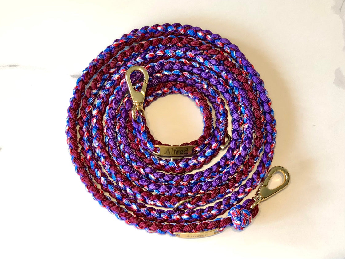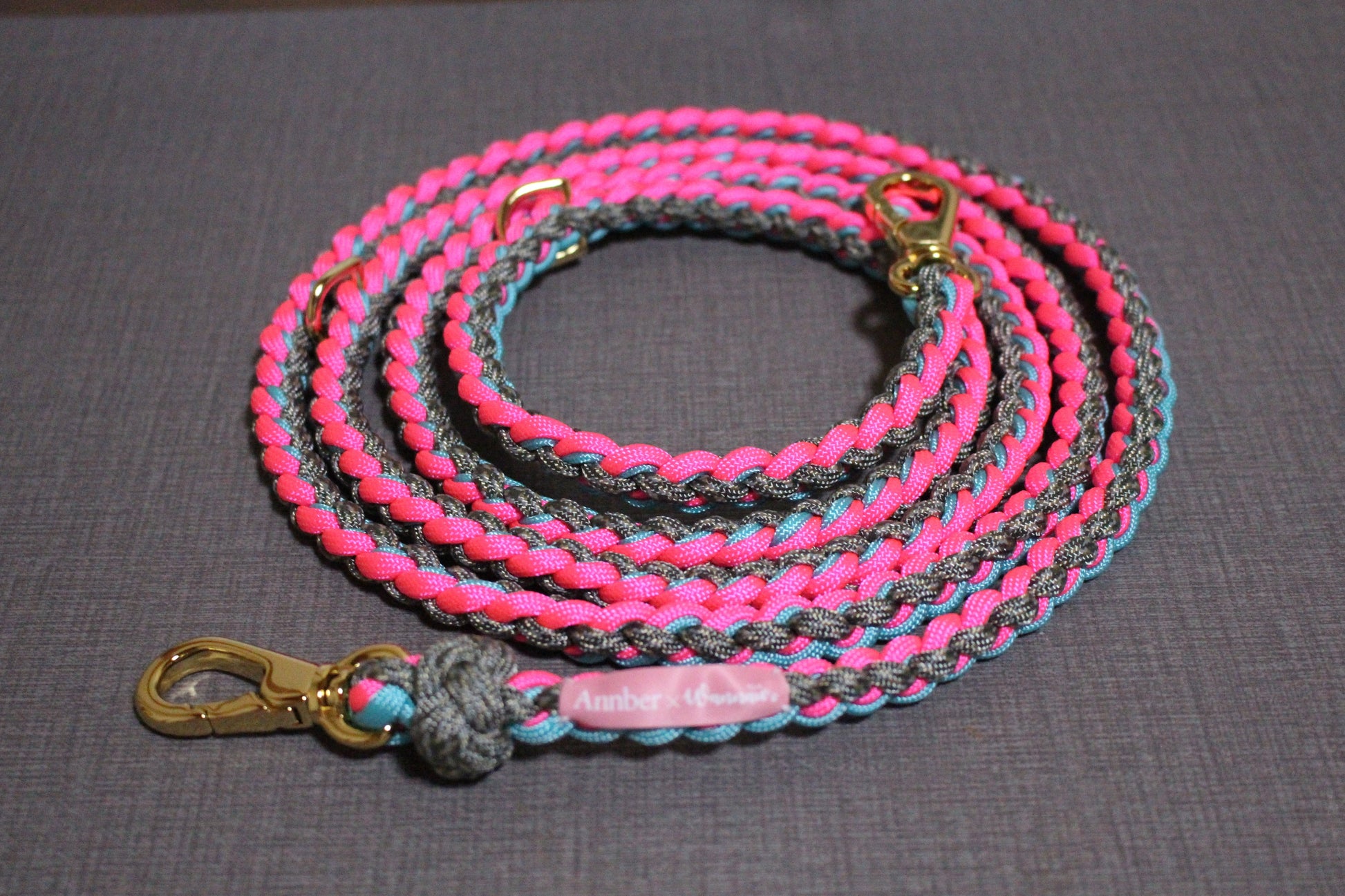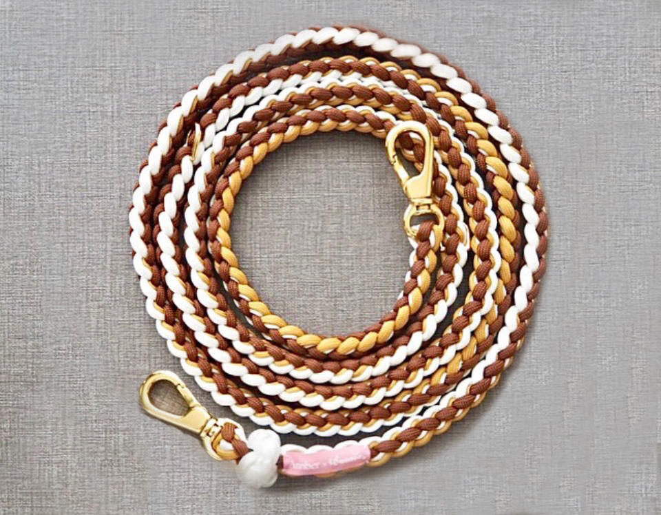 ꙳パラコードは一本あたり耐荷重250kgですが、30kg前後のわんちゃんは、強度を考え、4本4つ編みのリードのご使用をお勧めいたします。