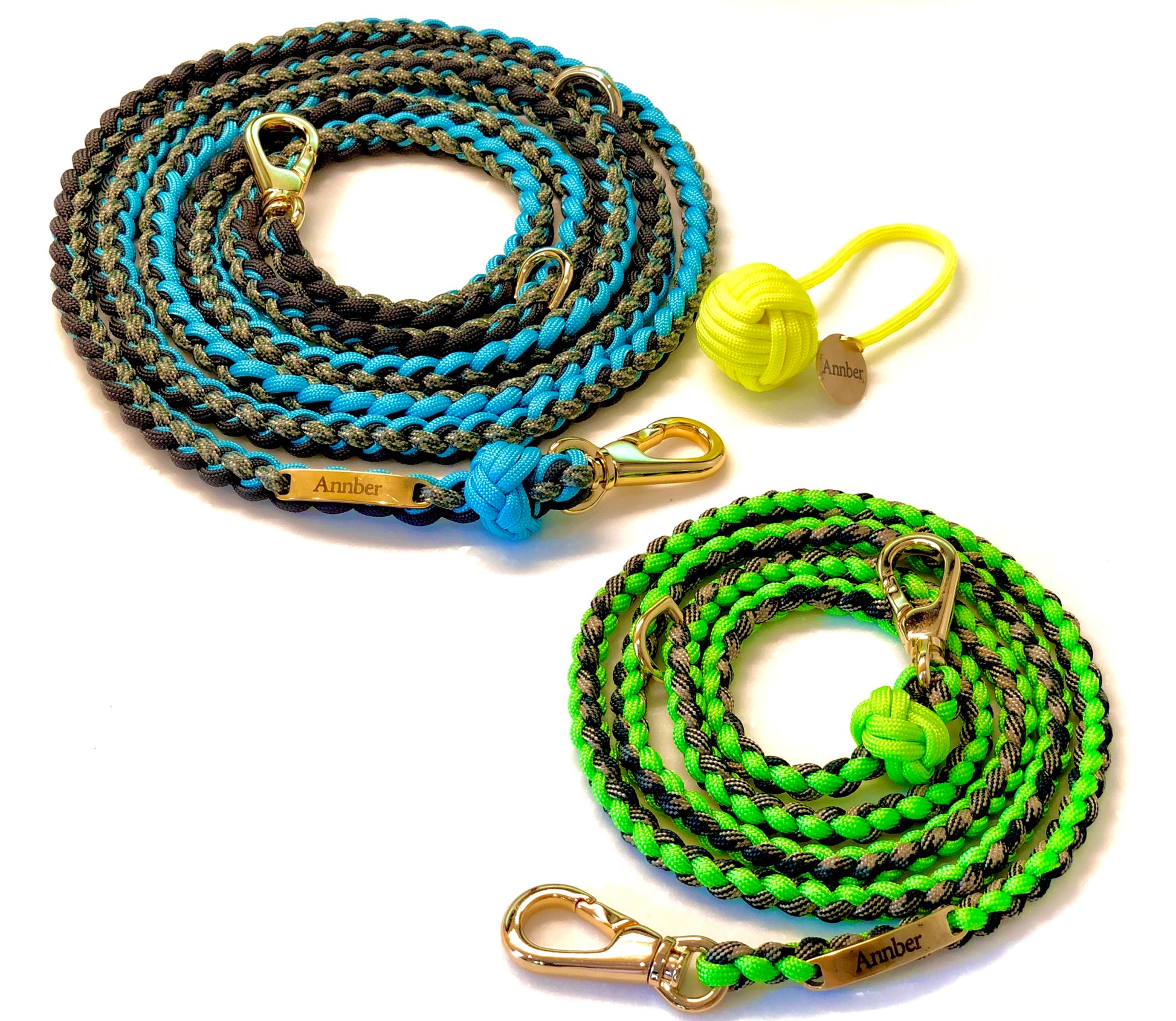 パラコードは一本あたり耐荷重250kgですが、大型のわんちゃんは、金具の大きさや強度を考え、4本4つ編みのリードのご使用をお勧めいたします。
