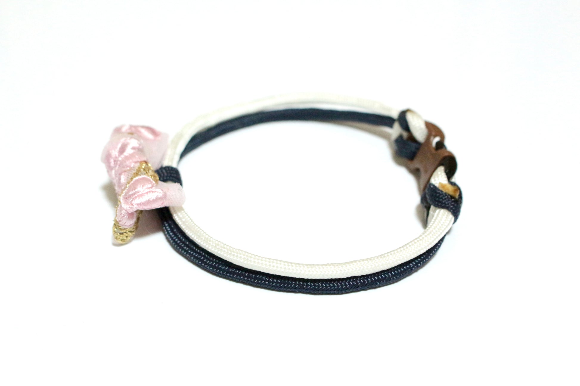 軽くて丈夫な、光沢や色彩の美しいパラコードを使うことでファッション性が高く、おおよそ7g前後と軽さも兼ね備えております。