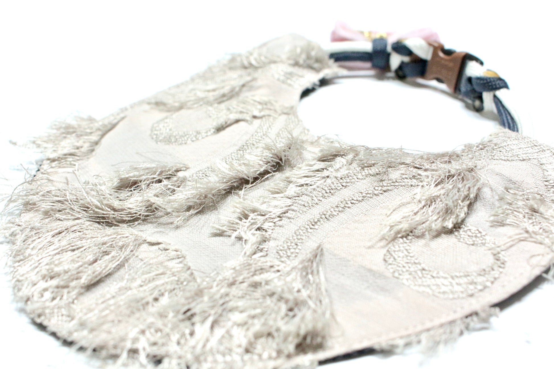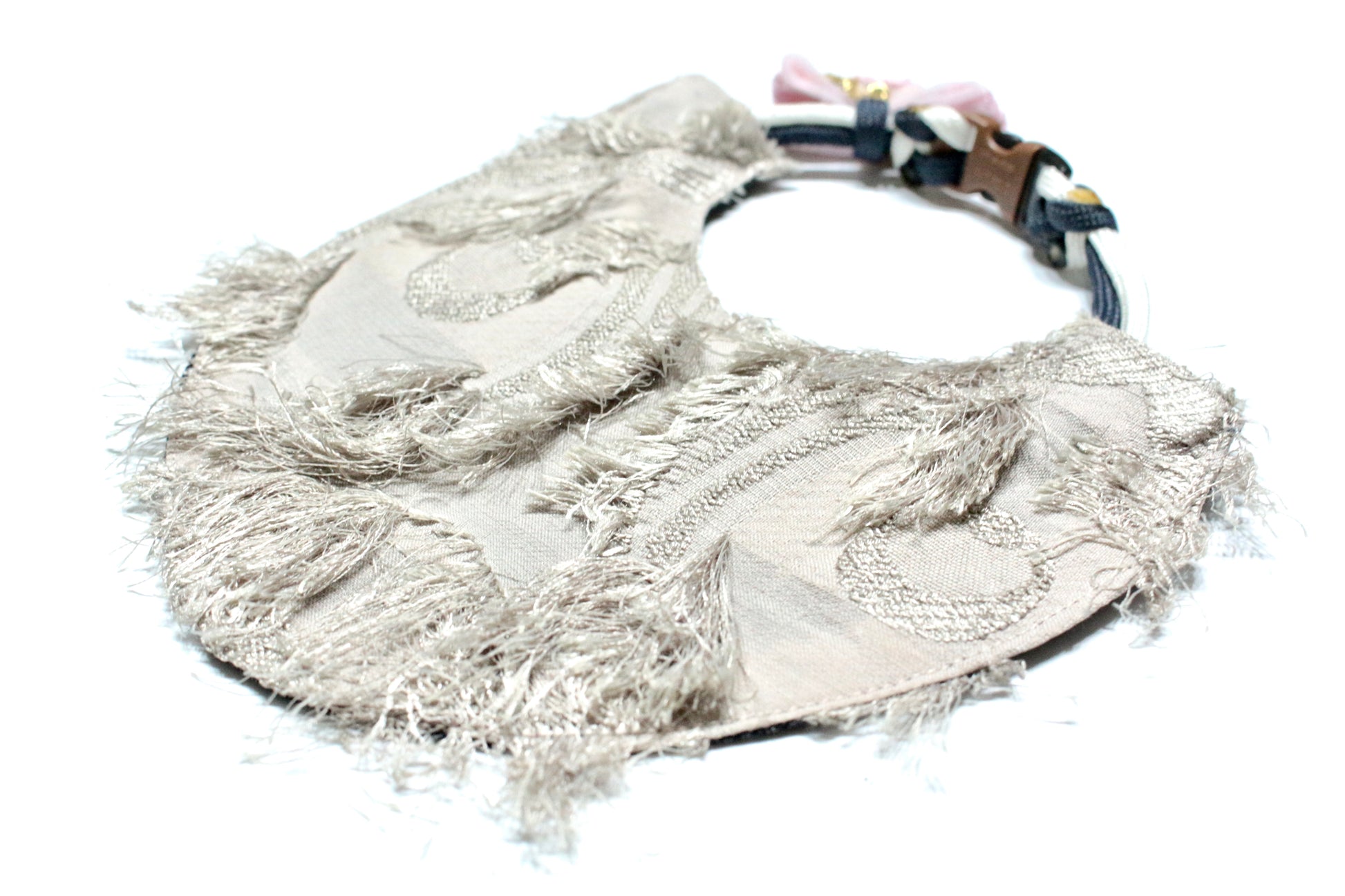 ひとつひとつ手作業で編み上げた猫の顔のモチーフの“col à bavette〈chat〉(コーラ・バベット/シャ)”ー, イタリアらしい細やかなデザインは、日々のコーディネートを華やかにしてくれるアクセントにもなりつつ、程よく調和してくれるデザインになりました♡