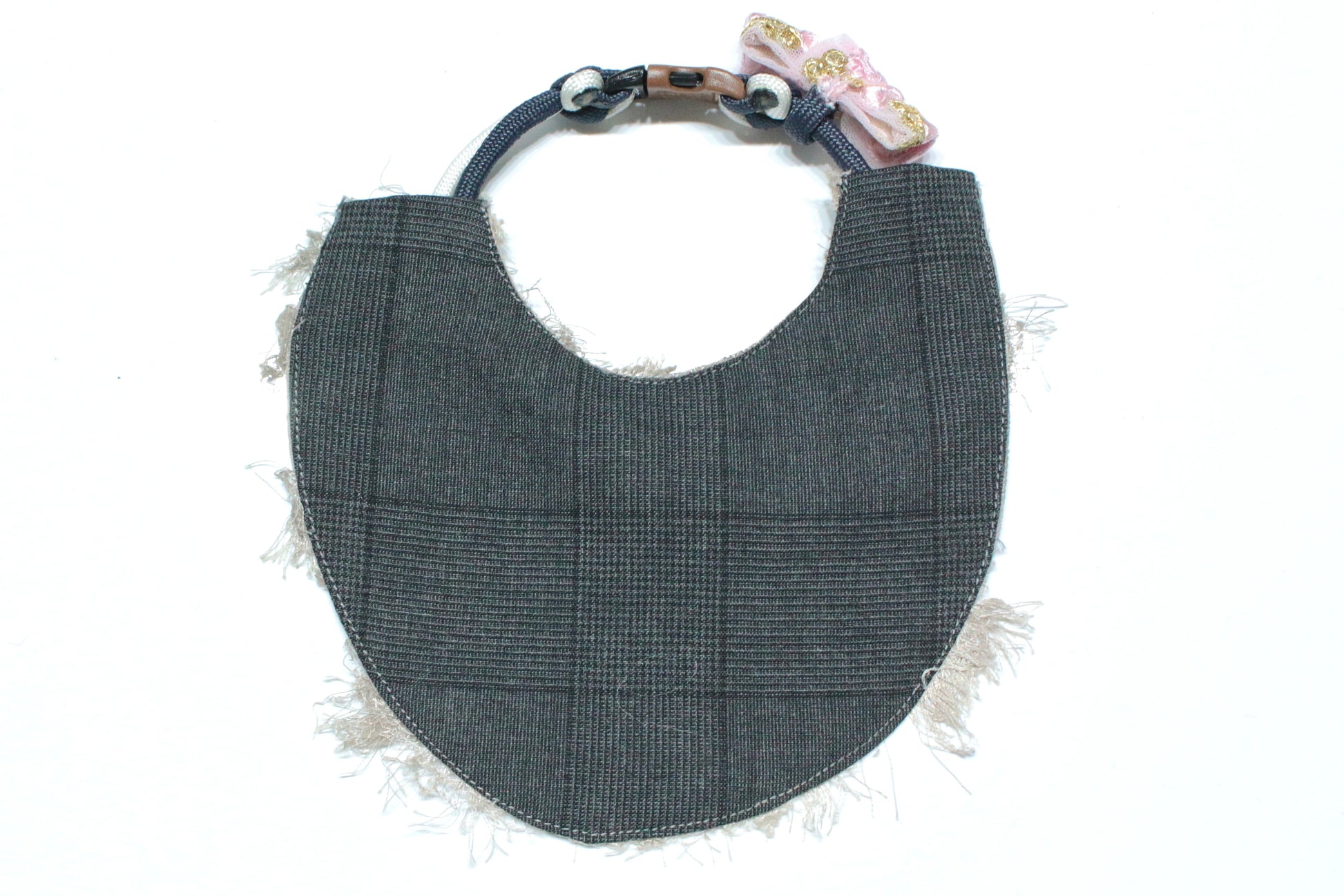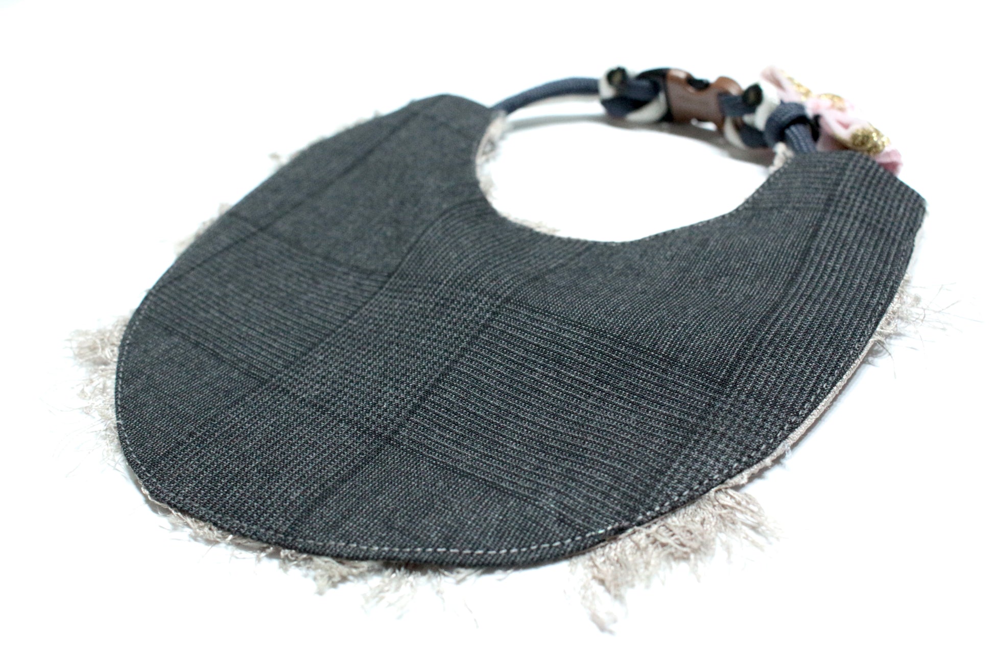 赤ちゃんの前掛けに着想を得た、取り外し可能なリバーシブルの前掛け付きの首輪です。