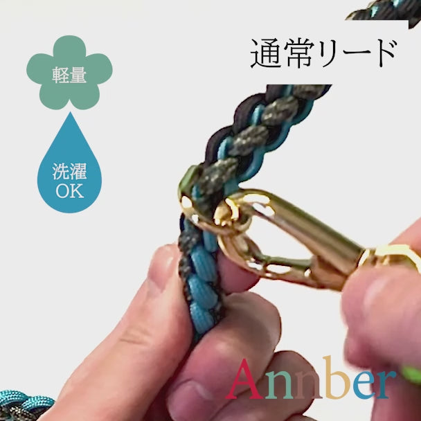 パラコードは一本あたり耐荷重250kgですが、大型のわんちゃんは、金具の大きさや強度を考え、3本〜4本4つ編みのリードのご使用をお勧めいたします。